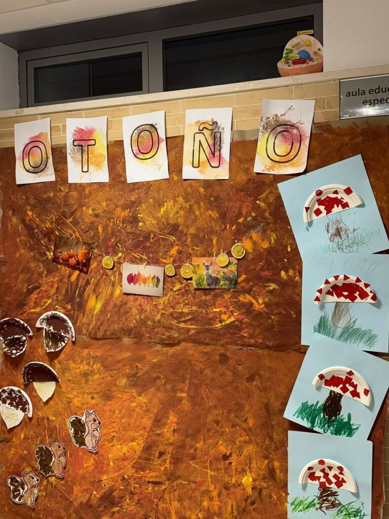 🍁✨ Durante estas primeras semanas del curso, el alumnado del Aula Mágica han estado aprendiendo el vocabulario del otoño, creando preciosas manualidades para decorar su mural del pasillo. 🌰🍂
